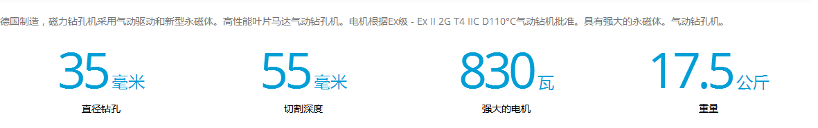 介紹:德國制造,磁力鉆孔機(jī)采用氣動(dòng)驅(qū)動(dòng)和新型永磁體。高性能葉片馬達(dá)氣動(dòng)鉆孔機(jī)。電機(jī)根據(jù)Ex級(jí) - Ex II 2G T4 IIC D110°C氣動(dòng)鉆機(jī)批準(zhǔn)。具有強(qiáng)大的永磁體。氣動(dòng)鉆孔機(jī)。